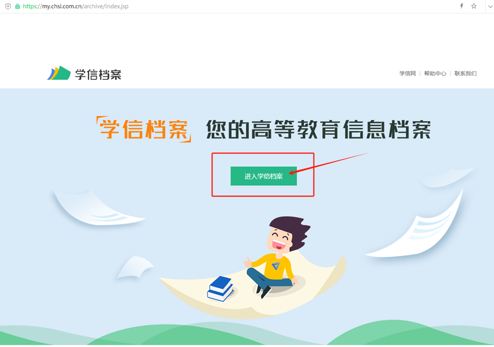 访问学信网“学信档案”:https://my.chsi.com.cn/archive/index.jsp,使用本人学信网账号进行登录。