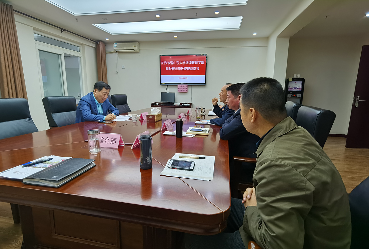 10月13日下午,山东大学继续教育学院院长靳光华走访我校继续教育学院。继续教育学院党总支书记耿岭主持座谈会,院长谈建勤,副院长吴民生,综合部、学历教育部、培训部负责人参加了座谈会。