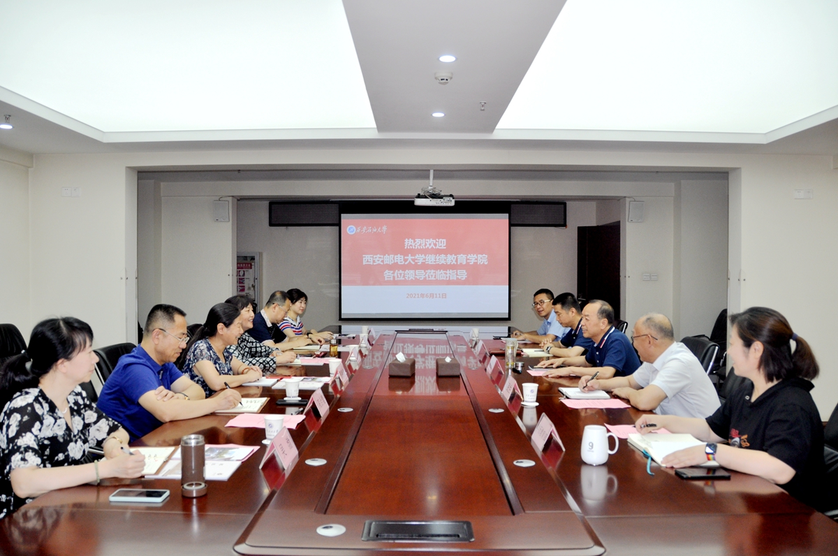 6月11日上午,西安邮电大学继续教育学院院长张继荣、党总支书记王颖等一行6人走访我校继续教育学院。继续教育学院院长谈建勤,副院长吴民生,综合部、学历教育部、培训部负责人参加座谈会。