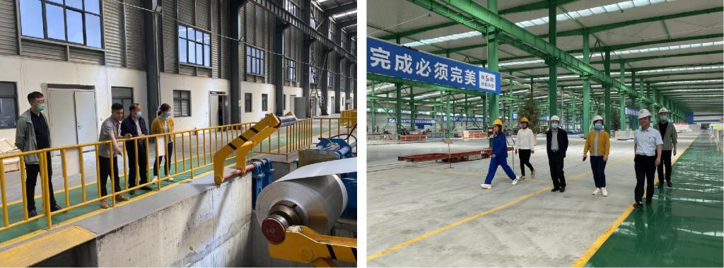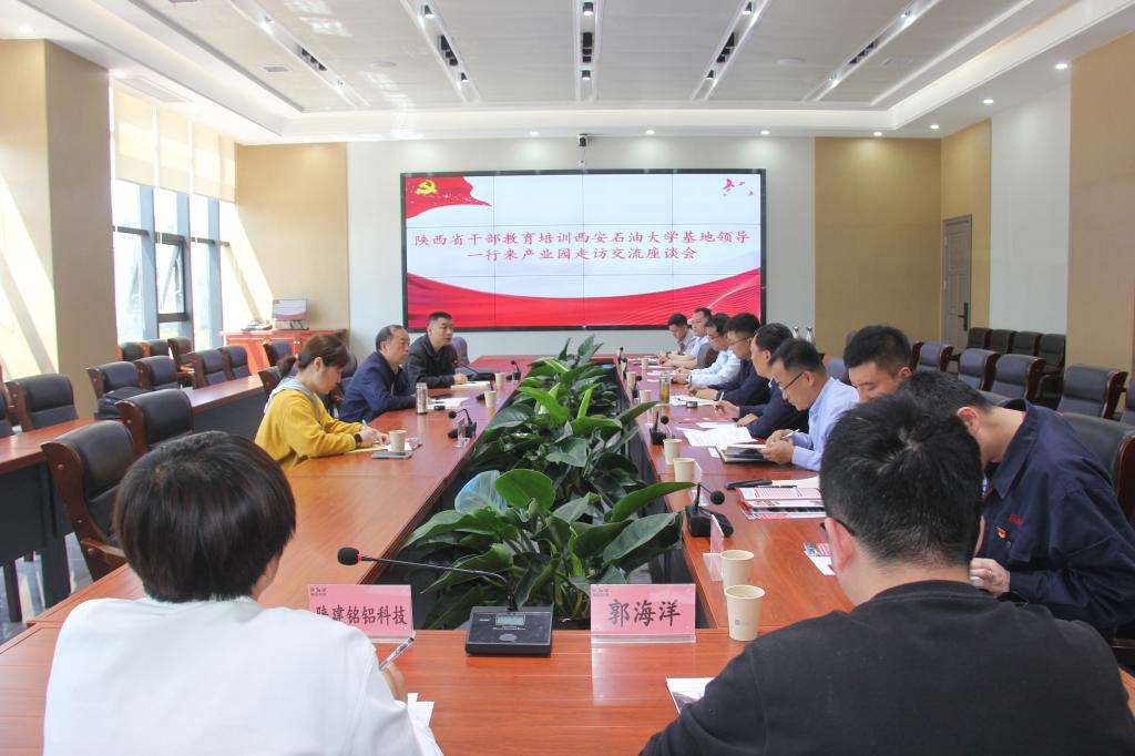 在铜川市董家河循环经济产业园,调研组先后参观了陕西美鑫镁铝合金有限公司、陕西山河丽铝业科技有限公司、陕西铭帝铝业有限公司和陕建铭铝科技等项目。铜川市干教办(铜川市委人才办)副主任刘亮主持召开座谈会,董家河循环经济产业园副主任杜国峰、副主任周浩及园内企业代表参加座谈,双方就“碳中和”、循环经济和干部教育培训等方面进行了深入交流。刘亮副主任对近年来基地开展的各类培训对铜川经济社会发展及在产业园区建设中发挥的作用予以充分肯定。双方就建立实践教学基地、学历招生及开展产学研合作达成合作意向。