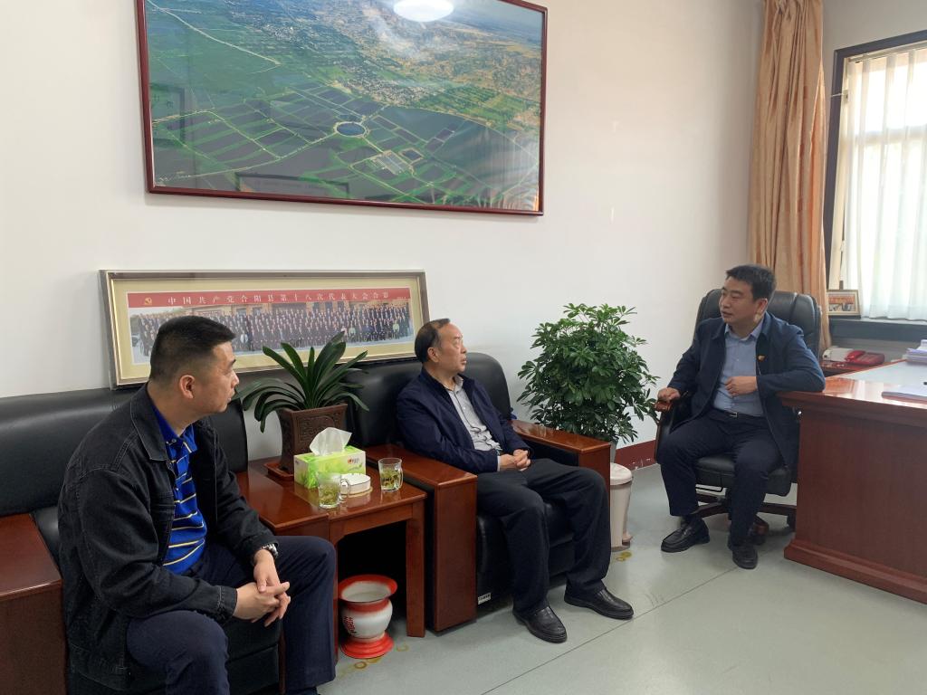 在渭南市合阳县,调研组一行对2016年秋季“创新思维与公共决策”、2019年秋季“园区建设与创新发展”专题研讨班两期培训学员、县委副书记段武学进行了专程回访。谈建勤介绍了近年来我校干训基地在助力地方社会经济发展所作的工作及取得的成绩,段副书记深情回顾了在基地学习期间的难忘经历,介绍了合阳县在现代农业、乡村振兴及新型集体经济发展等方面的特色和优势。双方表示将围绕乡村振兴、乡村治理和新型集体经济等培训项目开展深度合作研究,建立实践教学基地。