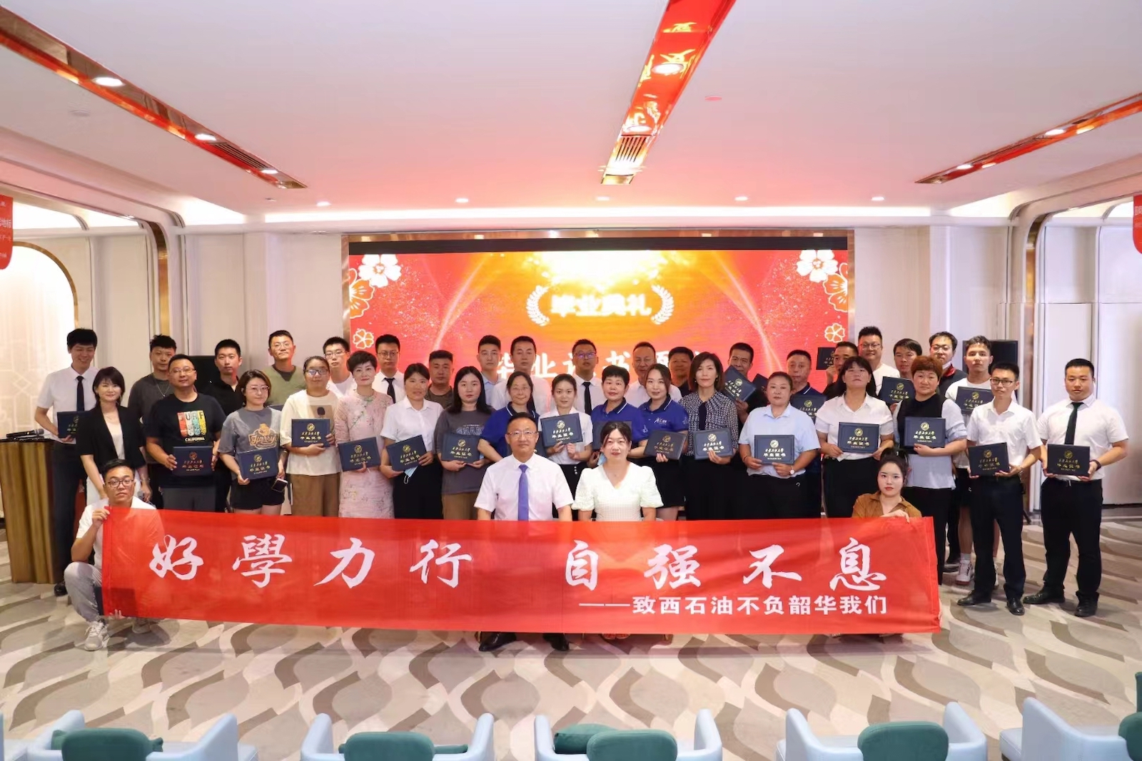 7月15日上午,西安石油大学乌鲁木齐西华管理教育培训中心函授站2022届高等学历继续教育毕业典礼在乌鲁木齐美居大都会售楼中心隆重举行。西安石油大学继续教育学院院长谈建勤发表线上毕业寄语,函授站主任何玉娟、学生单位领导代表唐辉出席毕业典礼。