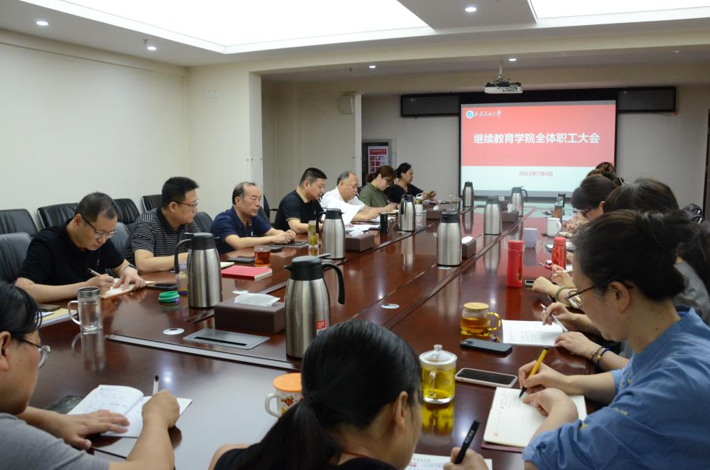 7月4日上午,继续教育学院召开全体职工大会,总结上半年工作任务完成情况,部署假期工作任务,并开展教职工集体学习。学院党总支书记耿岭主持会议。