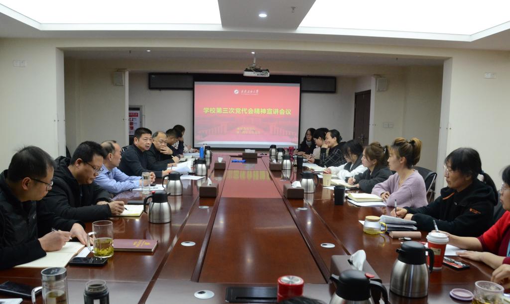 会议首先集体学习了题为《开拓创新 勇担使命 埋头苦干 争创一流 奋力谱写建设特色鲜明高水平教学研究型大学新篇章》的大会报告。耿岭结合自己对学校第三次党代会精神的学习体会谈到,学校第三次党代会是振奋人心的大会,为学校的高质量发展绘就了宏伟蓝图、指明了前进方向、提供了根本遵循、注入了强大信心,并全面准确、系统深入地从“锐意进取、全面发展的六年”“勇担新征程上的新使命”“奋力谱写学校高质量发展的新篇章”“全面加强新时代学校党的建设”等四方面对学校第三次党代会精神进行了深入解读。
