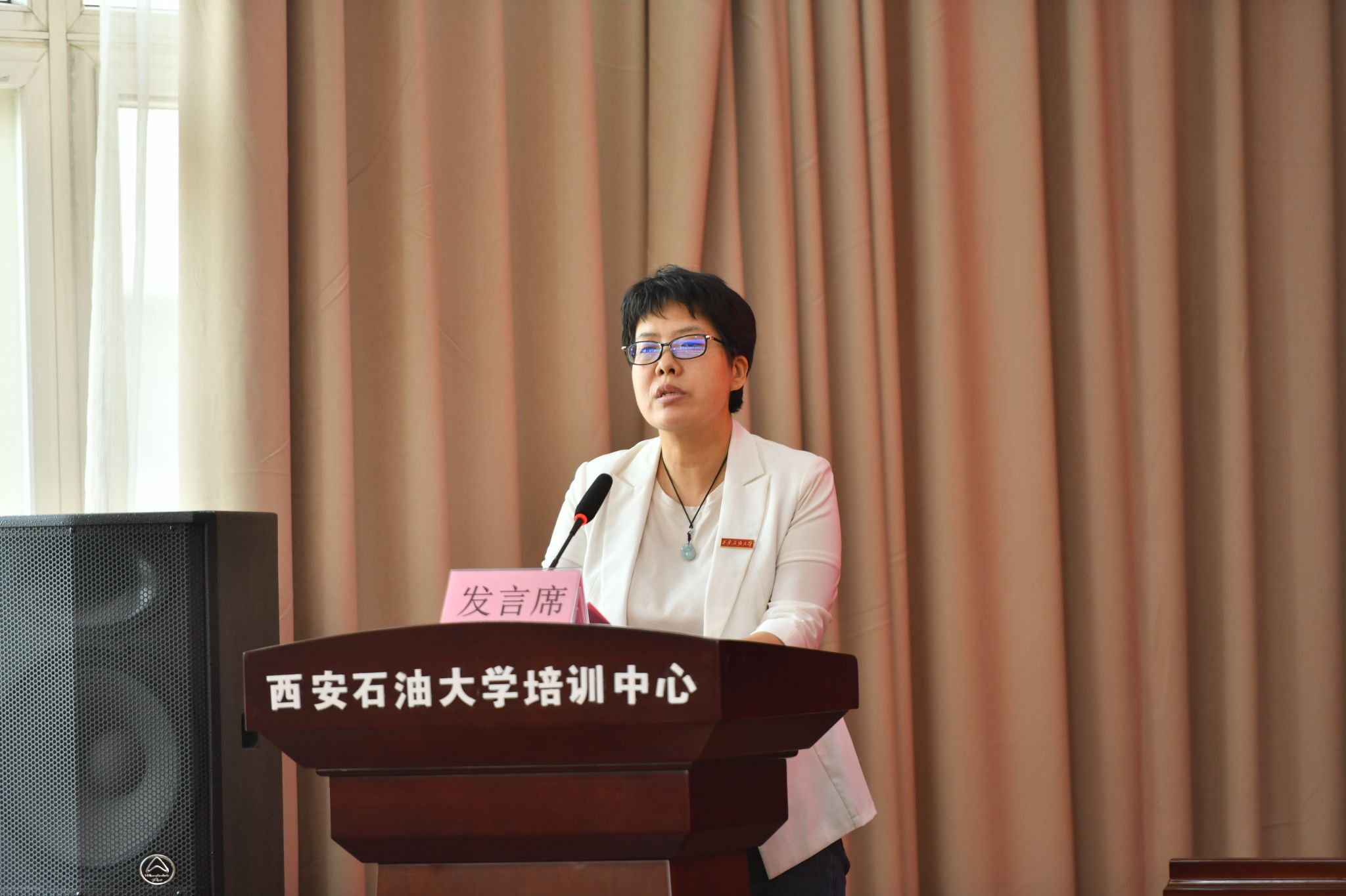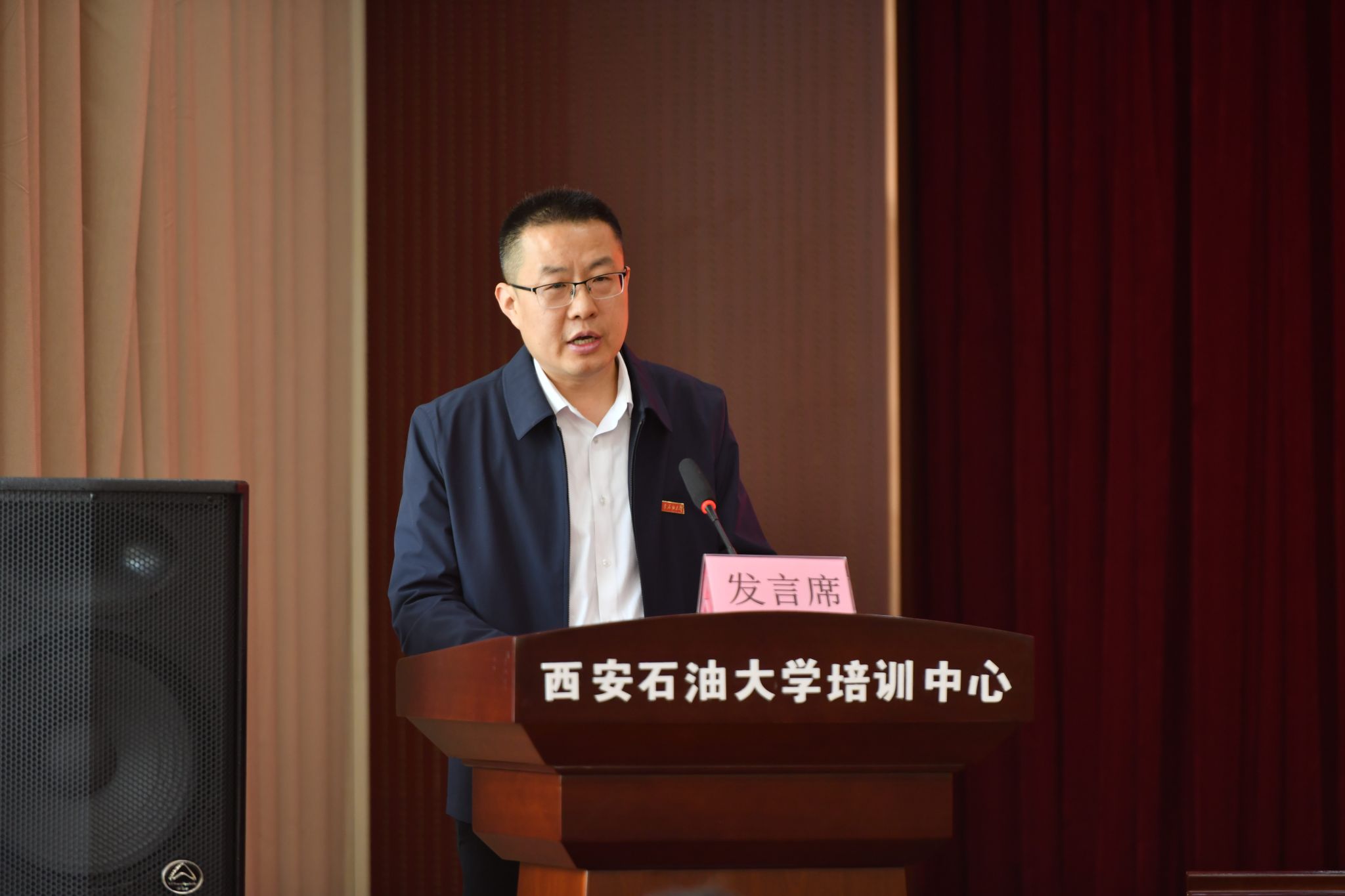榆林长城理工学校副校长马瑞代表校外教学点发言。他希望同学们能以理想为帆,以学习为桨,以实践为舟,以坚韧为锚,以“青春作伴好读书”的热情,以“不待扬鞭自奋蹄”的自觉,在西安石油大学这片沃土上,书写属于继教学子的华章。