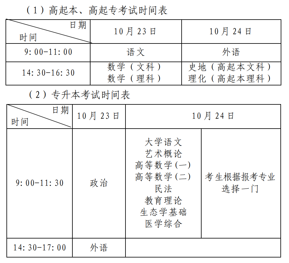 (2)报考高起本、高起专的,填报征集志愿的考试科目(含加试科目)须包含在原报志愿考试科目(含加试科目)内。