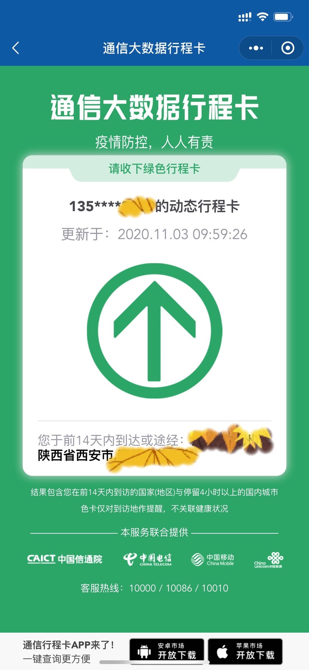 一、考前14天,考生应用本人手机申领“西安一码通”(“陕西健康码”)和“通信大数据行程卡”(疫情防控行程卡),进行14天体温测量记录和健康状况监测(填写《成人学位英语考试考生14天身体健康监测表》,)二维码及表格见附件。