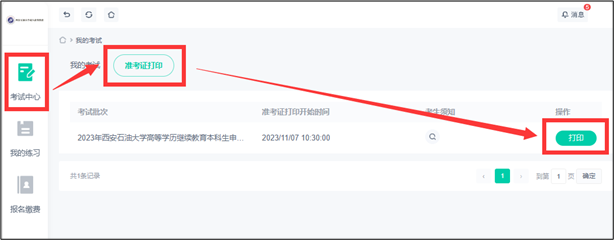 根据系统开放时间,考生在电脑端登录青书学堂,进入“考试平台”,依次点击“考试中心—准考证打印”,进入待打印准考证列表,点击考试批次后的“打印”按钮在线打印,需注意: