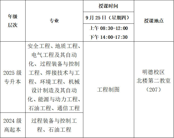 2025年秋季学期第三次(9月25日)线下教学课程表