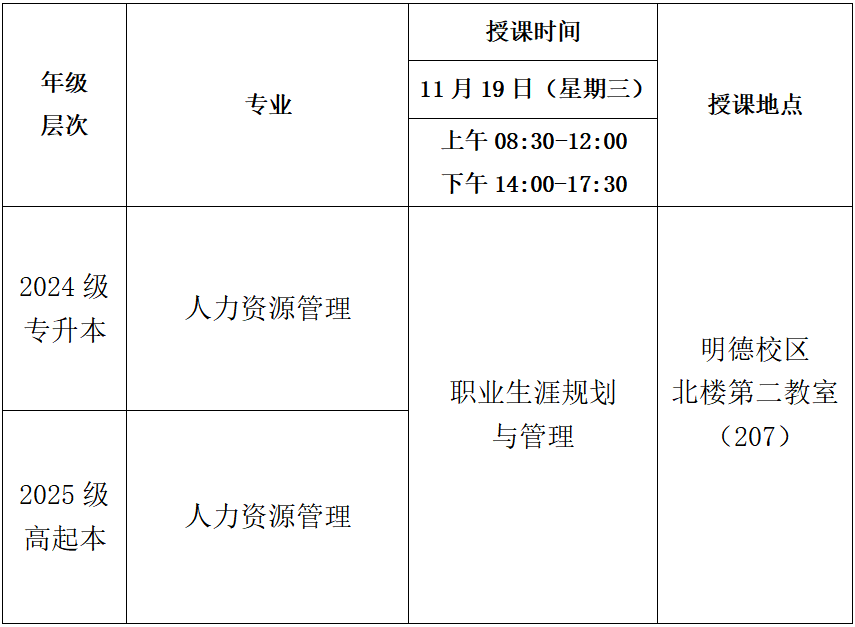 2025年秋季学期第七次(11月19日)线下教学课程表