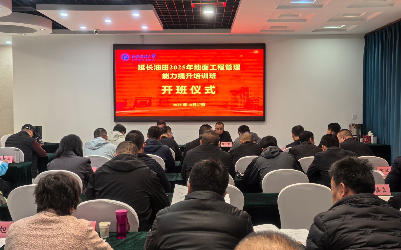 10月27日上午,由延长油田股份有限公司(以下简称“油田公司”)主办、我校承办的“2025年地面工程管理能力提升培训班”在延安顺利开班。油田公司工程管理部、相关部门及公司所属各单位共70名业务骨干参加培训。