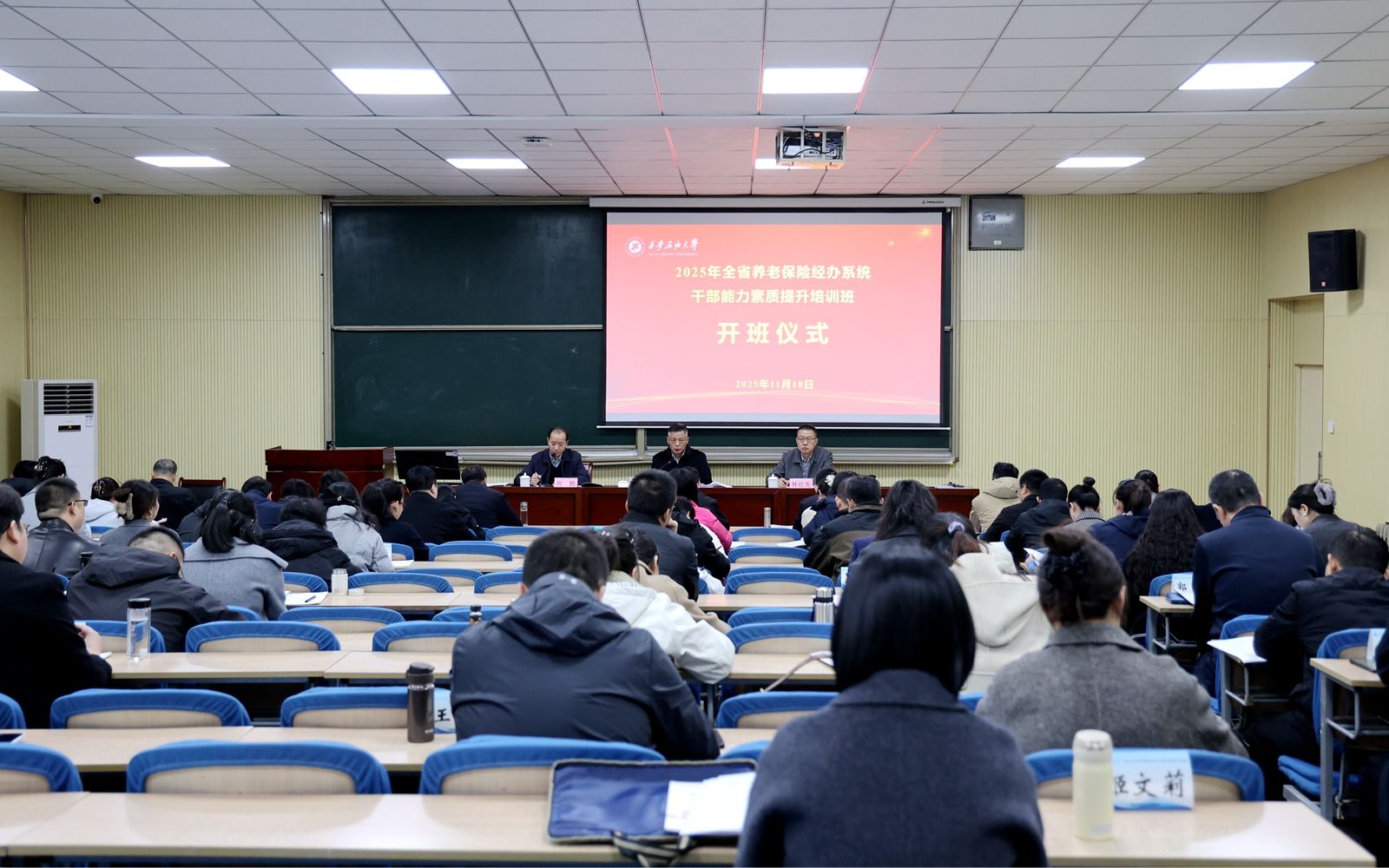 11月18日上午,由陕西省社会保障局主办、我校承办的“2025年全省养老保险经办系统干部能力素质提升培训班”在我校明德校区顺利开班。省社保局专职副书记张文举、我校继续教育学院(培训中心)院长(主任)林红先出席开班仪式,仪式由省社保局办公室主任何桥主持。来自全省各县(区)养老保险经办系统的80名业务骨干参加培训。